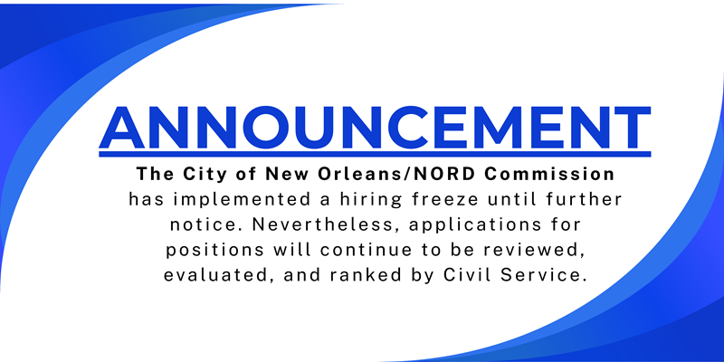 THE CITY OF NEW ORLEANS IS AN EQUAL OPPORTUNITY EMPLOYER AND DOES NOT DISCRIMINATE ON THE BASIS OF RACE, COLOR, RELIGION, NATIONAL ORIGIN, GENDER, AGE, PHYSICAL OR MENTAL DISABILITY, SEXUAL ORIENTATION, CREED, CULTURE, OR ANCESTRY.